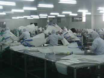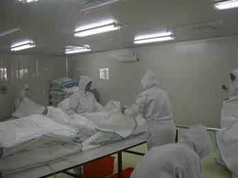 集装袋基布和辅料的生产及缝纫,以及产品的包装出货均在30万级清洁车间内进行。
